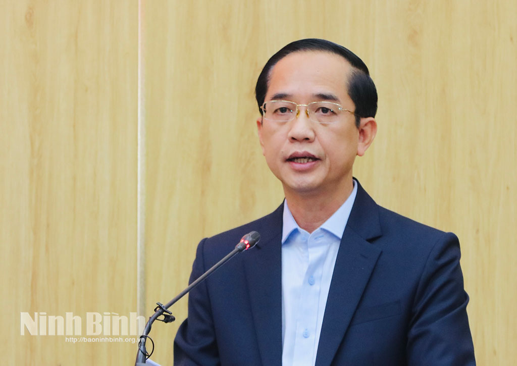 Mai Van Tuat, Deputy Secretary of the Ninh Binh Provincial Party Committee, President of the Vietnam Fatherland Front Committee of Ninh Binh province speaks at the working session.