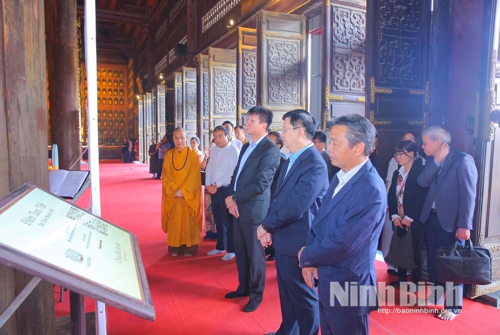 At the Trang An boat landing area within the Hoa Lu Ancient Capital historical site, after hearing reports from relevant units, Chinh acknowledged and highly appreciated the efforts of Ninh Binh province and the effective and responsible coordination of the Ministry of Culture, Sports and Tourism in developing the planning scheme for the preservation, restoration, and rehabilitation of the Hoa Lu Ancient Capital and the Trang An - Tam Coc - Bich Dong scenic area.