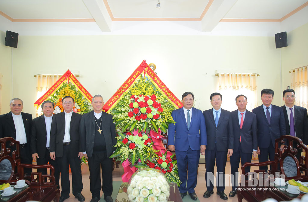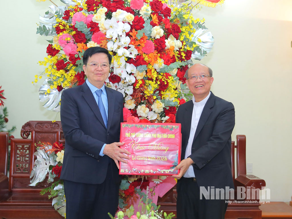 Deputy Prime Minister Mai Van Chinh and his delegation visited and extended Christmas greetings at Ninh Binh Parish Church in Hoa Lu ward and Diocese of Bui Chu in Xuan Truong commune, Ninh Binh province.