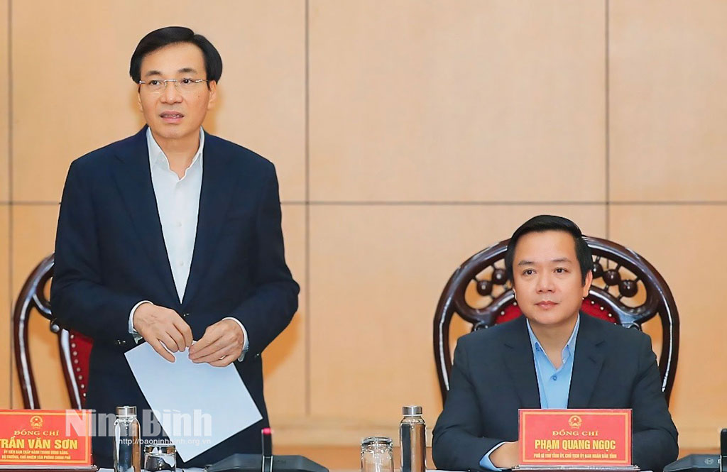A delegation from the Government, led by Minister-Chairman of the Government Office Tran Van Son, had a working session with Ninh Binh's leaders on November 4, focusing on production, business; import-export; infrastructure building, social housing, public capital disbursement; national target programmes; administrative simplification and two-level local administration in the province.
