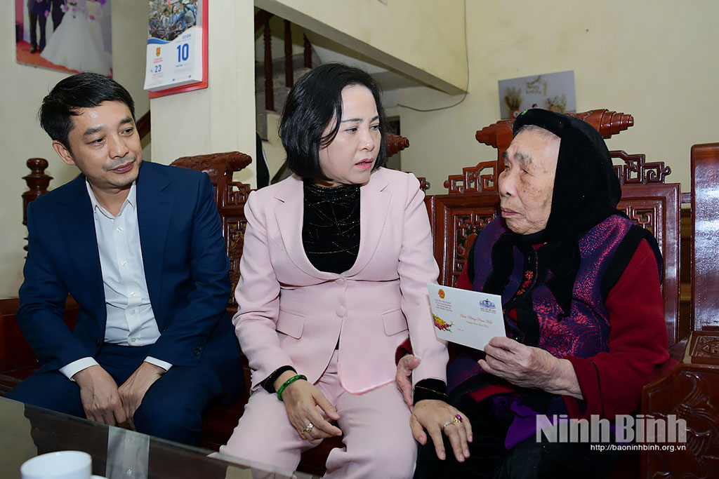 During the visit, the NA Vice Chairwoman presented 100 gift packages to disadvantaged households in Nam Hoa Lu ward, and an additional 900 packages to policy beneficiary families in several communes across the province. In Yen Tu commune, she presented 400 gift packages to policy families in Yen Tu, Yen Mac, Yen Mo and Dong Thai communes.