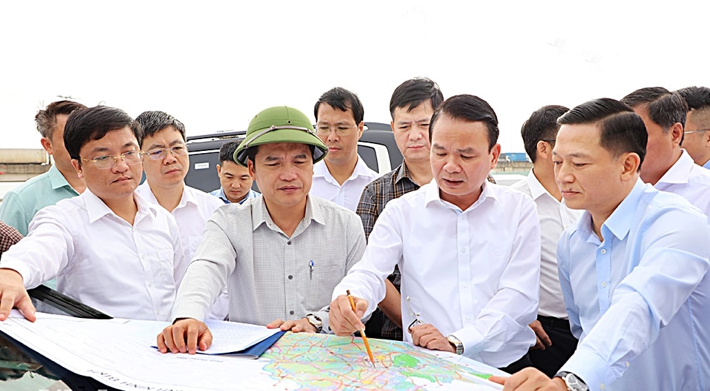 Secretary of provincial party committee Dang Xuan Phong inspect project of Thanh Liem - Cao Bo expressway.