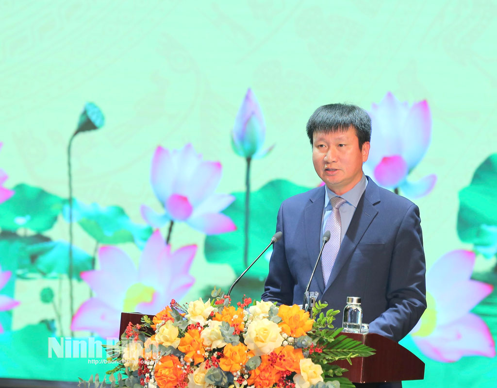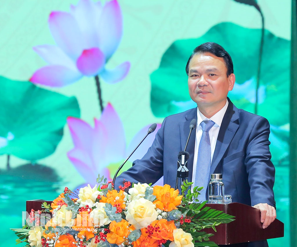 Secretary of the Ninh Binh Provincial Party Committee Dang Xuan Phong speaks at the conference.