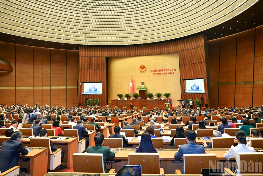 Standing before a new historic opportunity for the nation, we have every basis for profound confidence that, with the glorious 80-year tradition of the Vietnamese National Assembly; under the Party’s steadfast and wise leadership; with the unity and support of the People; with the close coordination of the Government and the entire political system; and with the democratic spirit, creativity, enthusiasm, and responsibility of all National Assembly deputies, the 16th National Assembly will certainly fulfil excellently the responsibilities entrusted by the Party, the State, and the People, contributing together with the entire Party, people, and army to realise the aspiration of building a peaceful, independent, democratic, strong, prosperous, civilised, and happy Vietnam, firmly advancing towards socialism.