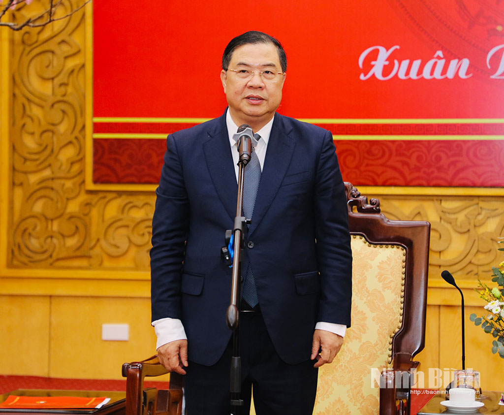 Chief of the Party Central Committee’s Office Pham Gia Tuc extends the Tet greetings to the Party Organisation, administration and people of Ninh Binh.