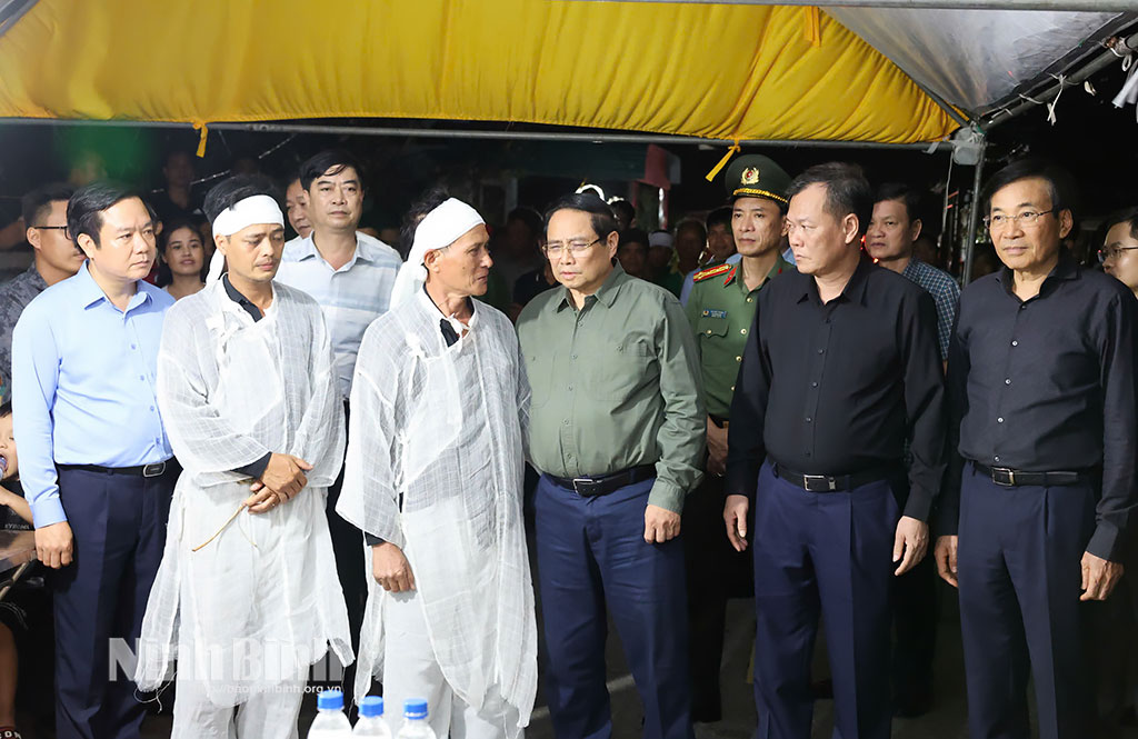 Later the same evening, the Government leader inspected reinforcement efforts at the eroded Hai Thinh sea dike. He praised Ninh Binh’s timely and proactive response in mobilising resources to support affected households.