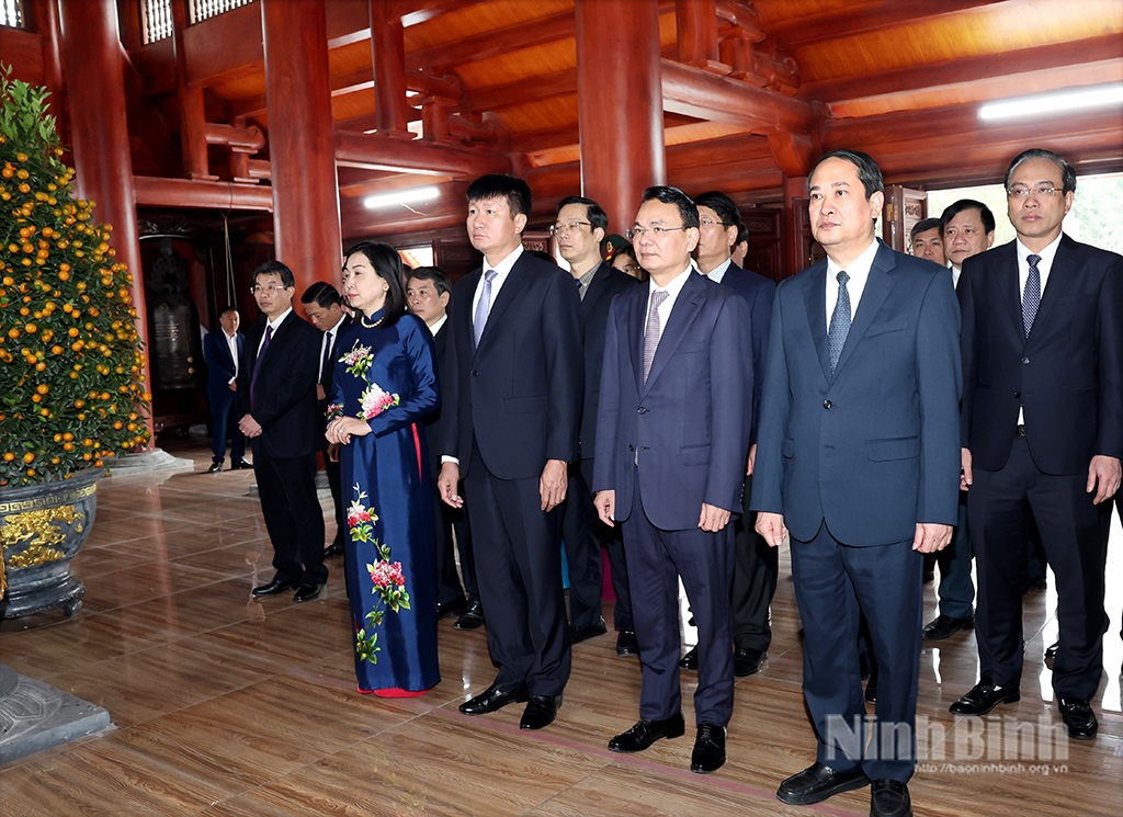 In front of the hallowed memorial to the heroic martyrs, the leaders vowed to uphold brave tradition of ancestor to unite, overcome difficulties; fulfill the targets set by the Provincial party committee's Resolution (tenure 2025 - 2030), and realize the goals of building Ninh Binh into a centrally-run city by 2030.