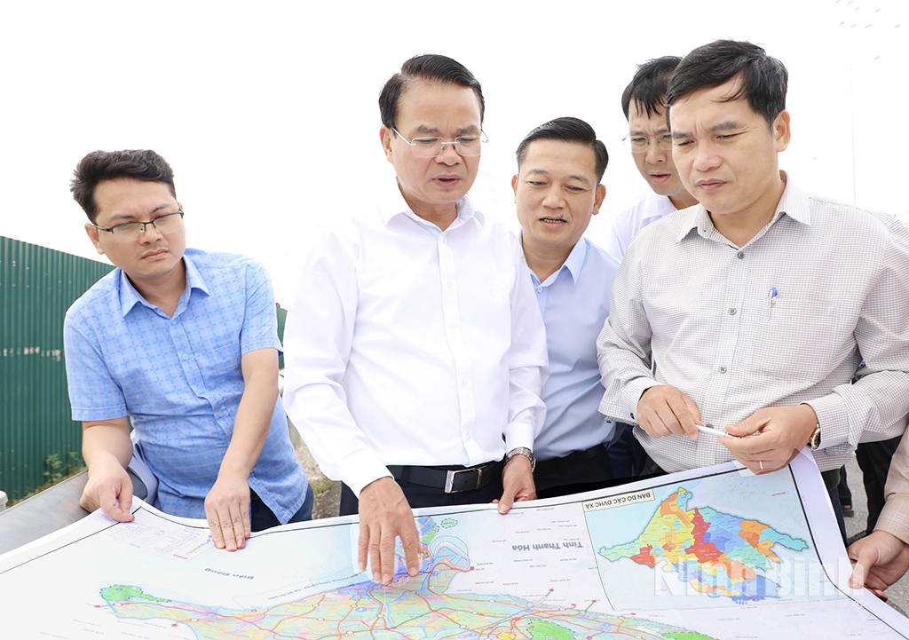 Phong, who is also Head of the provincial Delegation of National Assembly deputies, and the working delegation surveyed the actual construction site and listened to the Department of Construction report on the projects on construction of the main axis road for socio-economic development in Ninh Binh province (Hoa Lu - Nam Dinh); construction of Thanh Liem - Cao Bo road (T4 axis); and construction of the road connecting Hoa Lu with Longitudinal axis 07.