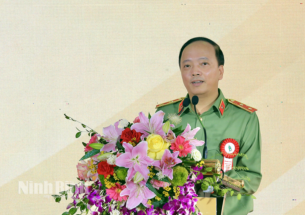 The ceremony also saw the attendance of Dinh Van Hung, former Member of the Party Central Committee, former Secretary of the Ninh Binh Provincial Party Committee; Tran Dang Quynh, Alternate Member of the Party Central Committee, Deputy Secretary of the Provincial Party Committee; Tran Anh Dung, Member of the Standing Board of the Provincial Party Committee, Vice Chairman of the Provincial People's Committee; and Lieutenant Colonel Cu Quoc Thang, Member of the Standing Board of the Provincial Party Committee, Director of the Provincial Department of Public Security; among others.